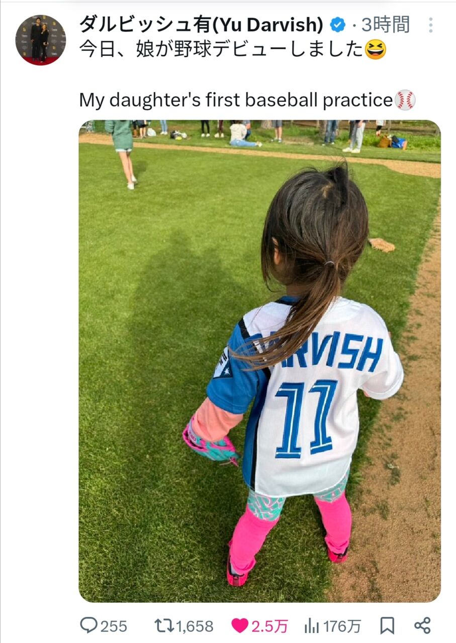 ダルビッシュの娘、可愛くなってしまう 2024年03月03日 カテゴリ:日本人メジャーリーガーダルビッシュ有 ダルビッシュ有、娘の“野球デビュー”報告→着用ユニフォームに反響「感激!」「将来が楽しみすぎる」 (出典:クランクイン!) プロの最後はファイターズでお願いします!(出典 【画像】ダルビッシュの娘、可愛くなってしまう) 【ダルビッシュの娘、可愛くなってしまう】の続きを読む タグ :#ダルビッシュ有#パドレス#MLB
